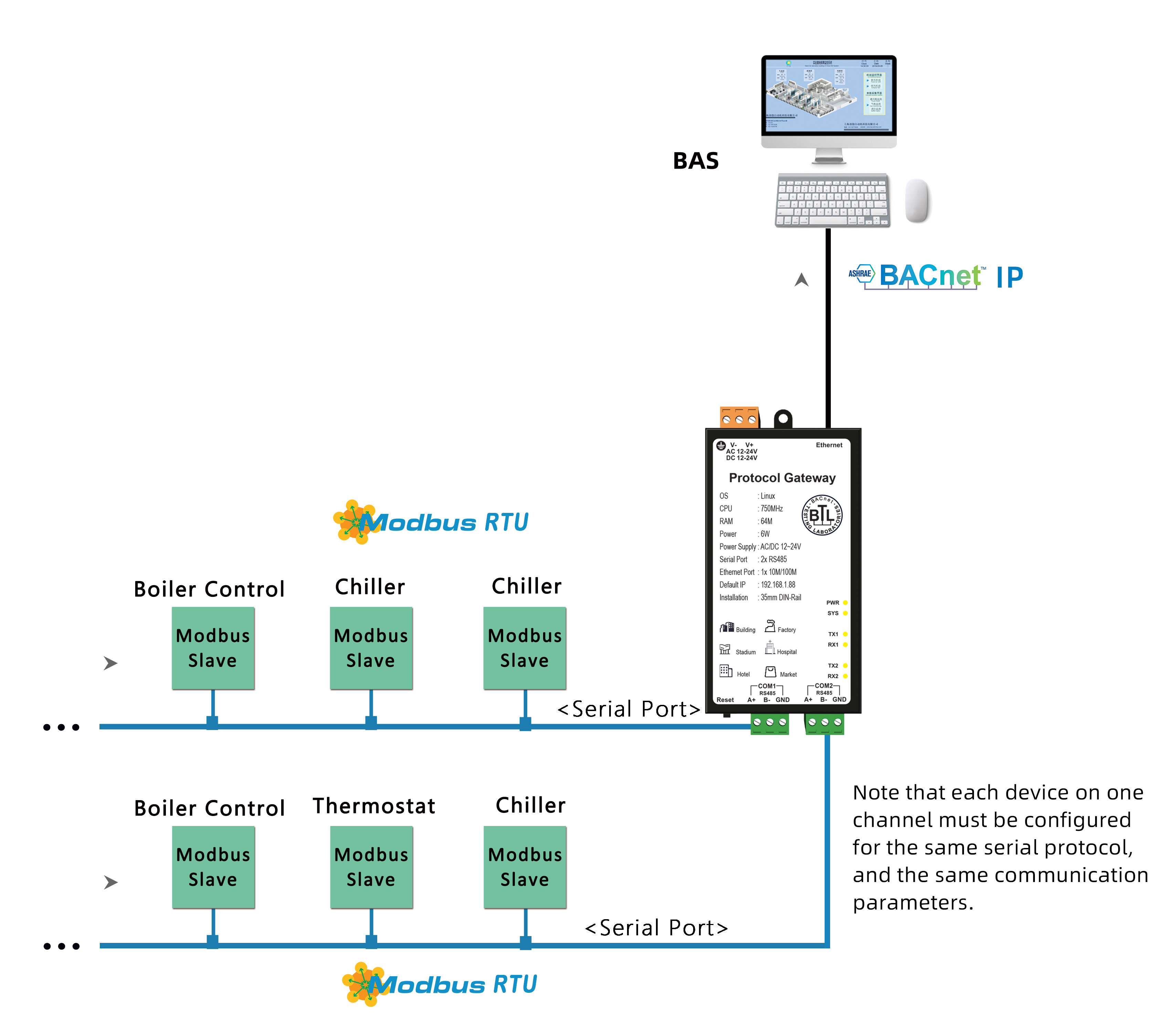 - BACnet Gateway compatible with BACnet routing function;