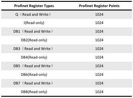 Note: The number of gateway register points is dynamically supported. The total number of points cannot exceed 1024.