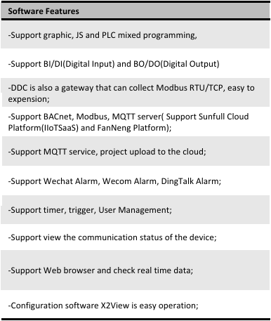 DDC1002-12800 (1 Ethernet, 2 serial port, 12 DI, 8 DO, dynamically supports 512 points) only supports collecting Modbus RTU/TCP and Simulator driver, and convert it to BACnet IP and Modbus TCP servers simultaneously. Using X2View software to make the project(can¡¯t make configuration pages).