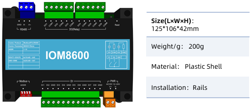 Q④: How to forcibly reset the baud rate of this I/O module to its default value? A④ : Activate the module's hardware reset button (typically labeled Reset). This action immediately restores the baud rate to 9600, ensuring rapid reset of the communication link to its initial state.