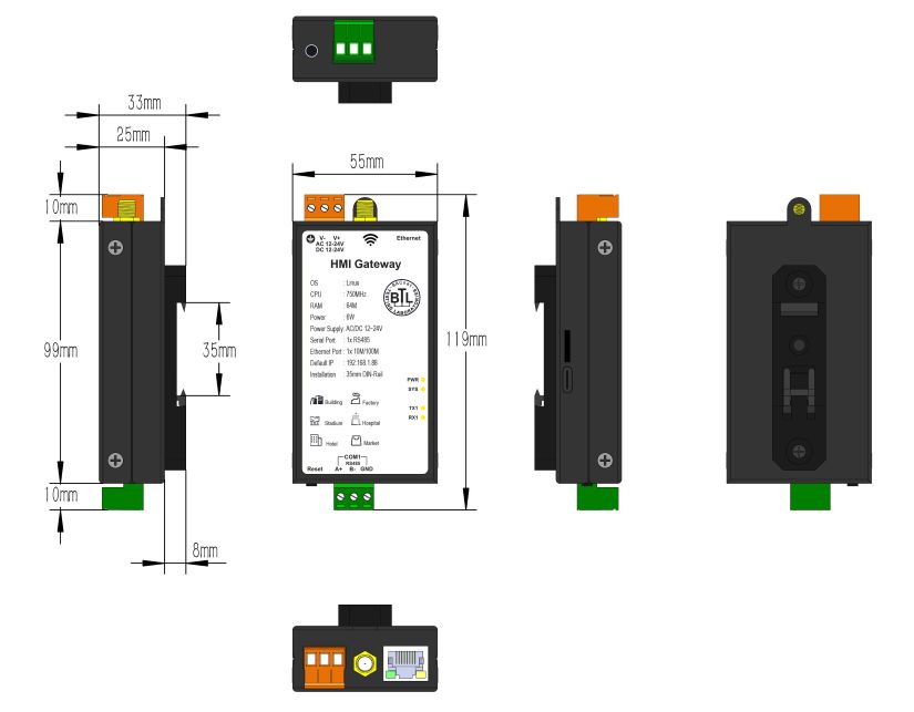 处理器:1核750MHZ 电源:AC/DC 12-24V