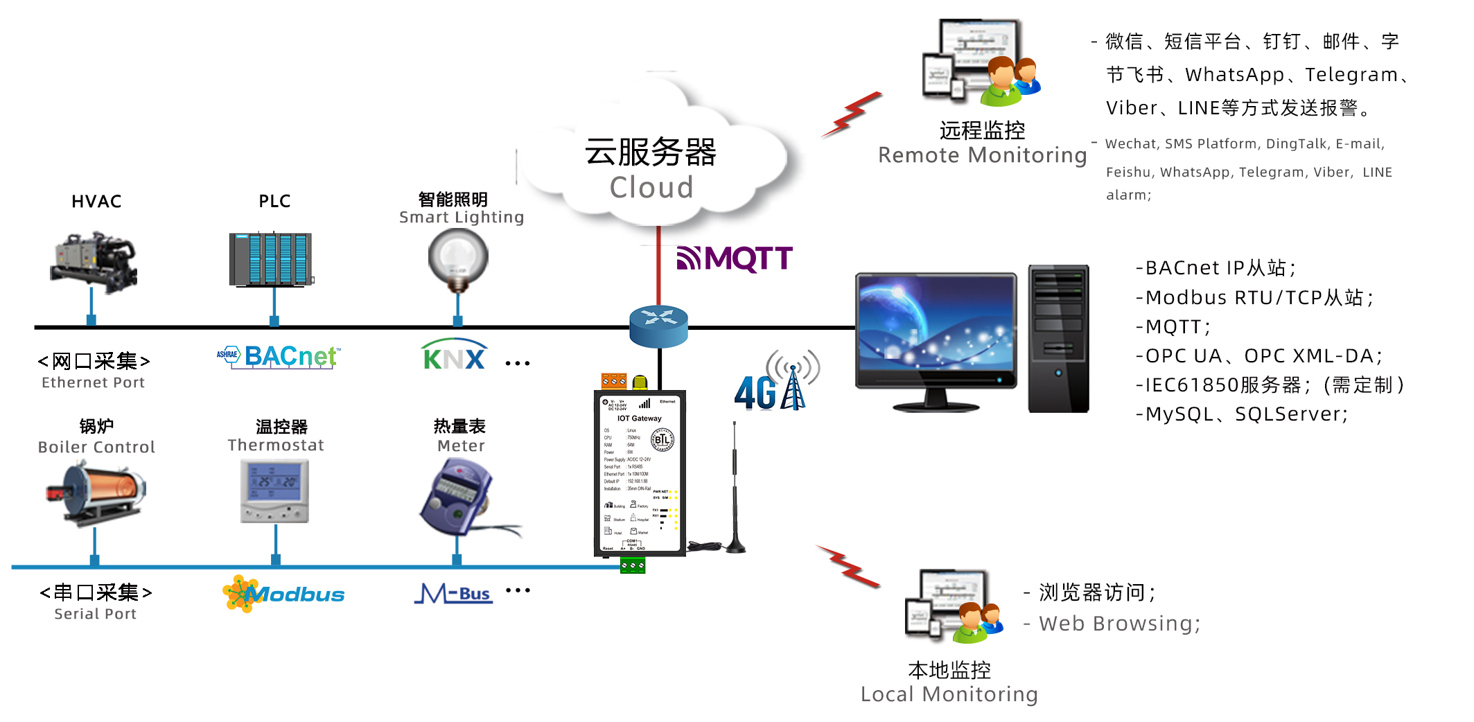 | -支持转为BACnet服务器、Modbus服务器、IEC61850服务器、OPC UA服务器、MQTT服务器; |