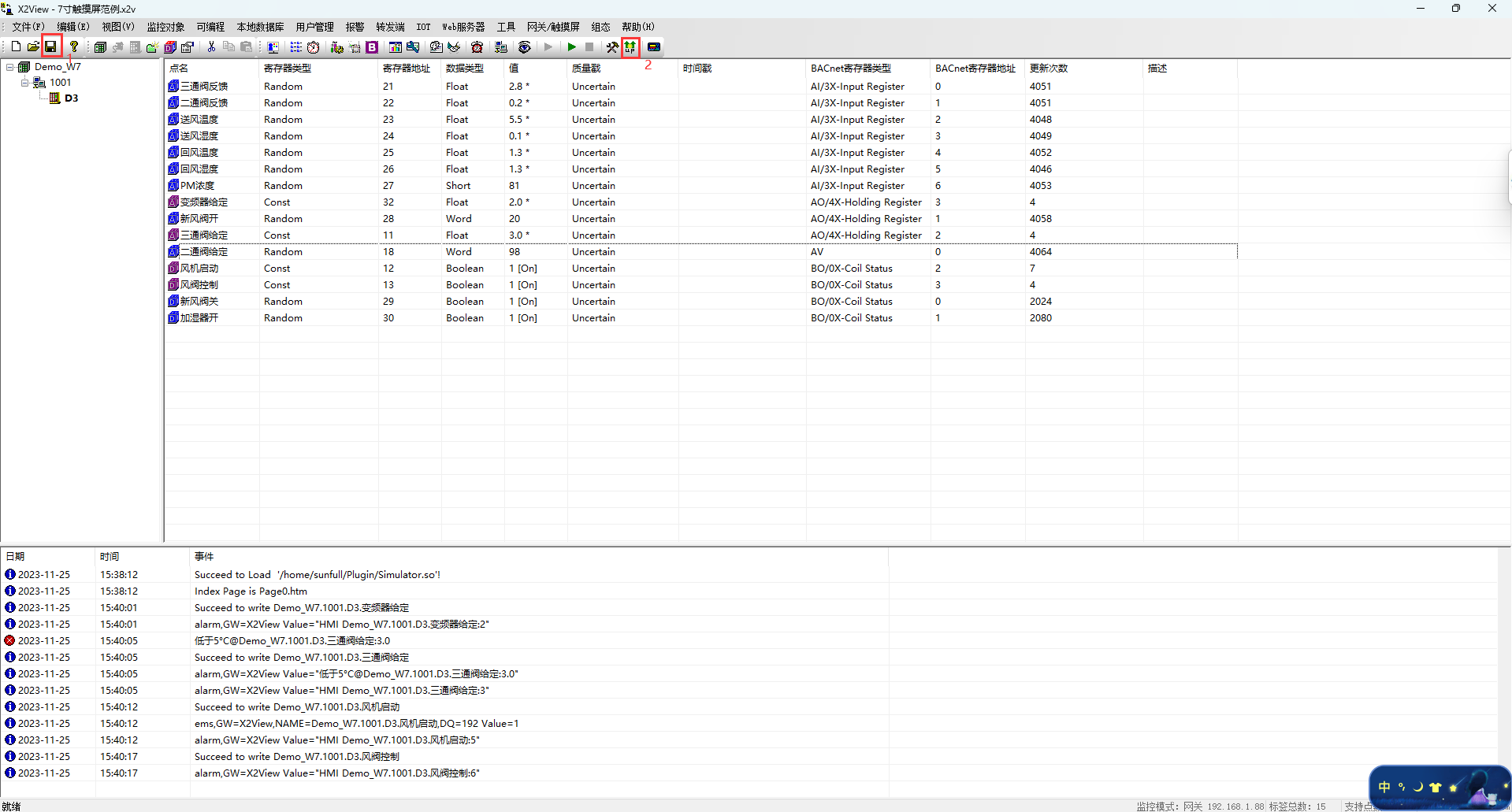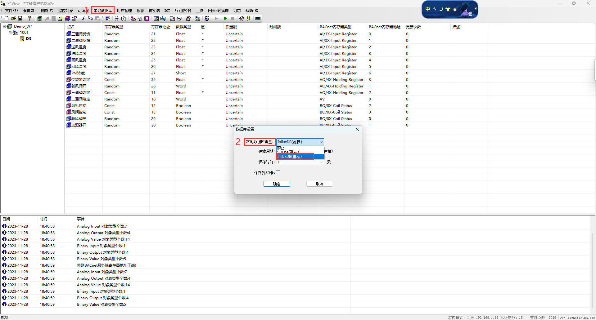 2. ①报警点位设置;②数据历史存储设置 ;